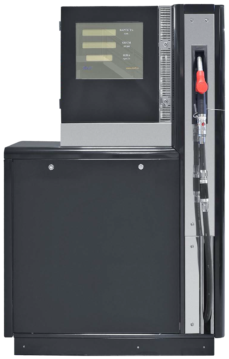 Gasoline 100 and 100-VK series dispensers are designed for dispensing light petroleum products at gas stations. Gasoline 100-1 and Gasoline 100-1-VK are one-sided and two-sided single-hose dispensers. The dispensers are equipped with a hydraulic system and reliable electronic unit.