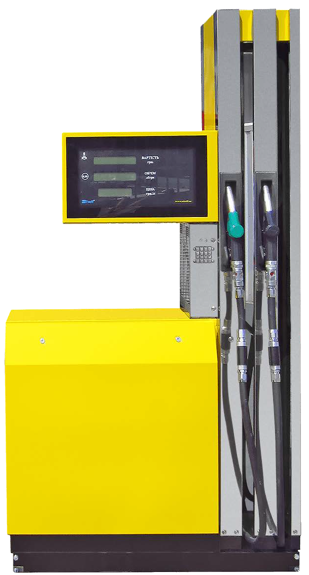 Gasoline 100 and 100-VK series dispensers are designed for dispensing light petroleum products at gas stations. Gasoline 100-1 and Gasoline 100-1-VK are one-sided and two-sided single-hose dispensers. The dispensers are equipped with a hydraulic system and reliable electronic unit.