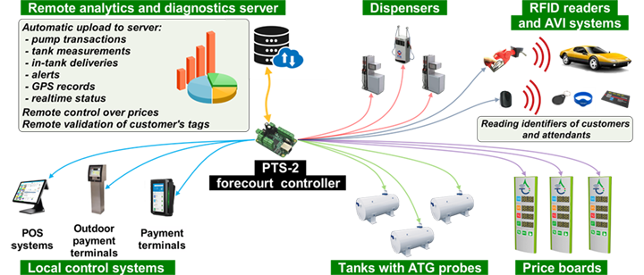 - Real-time control over fuel dispensers and ATG systems. PTS-2 controller provides a hardware solution for stable and reliable operation of forecourt equipment.