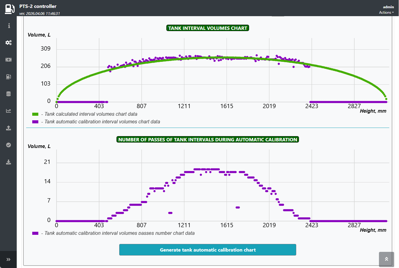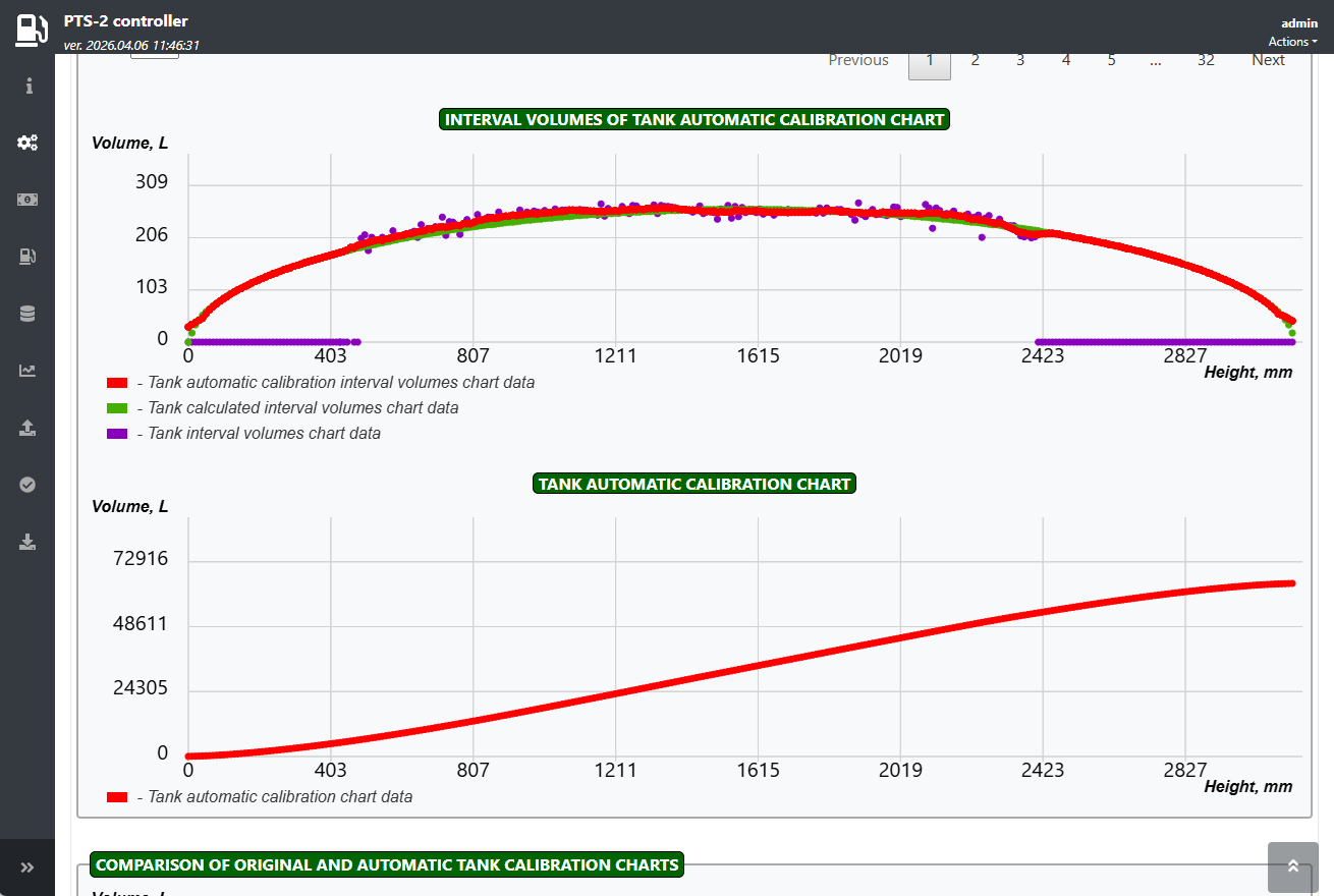 - No need to manually write down totals from pumps at start and end of the working shifts - now these values are automatically recorded by the PTS-2 controller and are shown in the generated reports